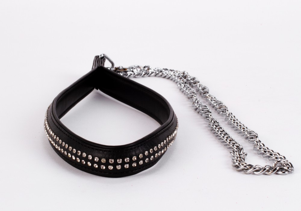 Elegante collare e guinzaglio a catena nero