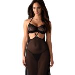 Concedetevi il lusso puro con la splendida sottoveste Iliosa. Un reggiseno in pizzo con ferretto mette in risalto la scollatura, mentre il tessuto trasparente accarezza dolcemente le vostre curve. Ritagli intricati ed eleganti spalline aggiungono un fascino sensuale. Il set include perizomi classici. Catturate l’essenza della grazia e del piacere in questo squisito design. – Camicia da notte e perizoma della collezione Iliosa. – Un mix di pizzo e tessuto trasparente – Coppe con anelli – Dettagli in argento lucido e pendente con il nostro logo – Vita regolabile e cinturino al collo – Chiusura a gancio multistadio – Progettato nell’UE – 94% poliammide, 6% elastan Sofisticato pigiama nero per donne che sanno ciò che vogliono. Progettato nell’UE. Questo prodotto non è adatto a bambini di età inferiore a 3 anni: rischio di soffocamento a causa di piccole parti che potrebbero staccarsi dal prodotto.