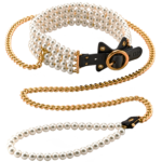 Guinzaglio e collare con perle luminose: elegante set di contenimento con dettagli in perle e oro
