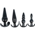 Set composto da 4 plug anali di diverse forme e dimensioni. Perfetto per l’allenamento anale per principianti. Realizzato in TPE.