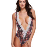 Fai spazio nel tuo armadio per il nuovissimo e splendido body della collezione Baci! Realizzato in un motivo floreale scuro e pizzo bianco a contrasto, questo capo presenta una scollatura a V straordinariamente profonda, con orlo in pizzo e scollatura alta fino ai fianchi. La schiena presenta un’apertura a goccia sorprendentemente ampia, che lascia la schiena scoperta, e un taglio audace sul retro.